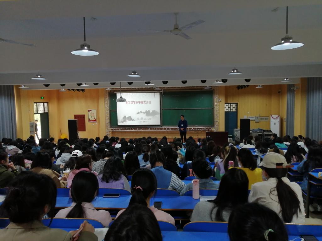 2021年4月12日上午,中国文字博物馆的杨军辉科长(馆员)在A18-201为taptap点点官方网站师生做了一场《学习汉字从甲骨文开始》的报告。