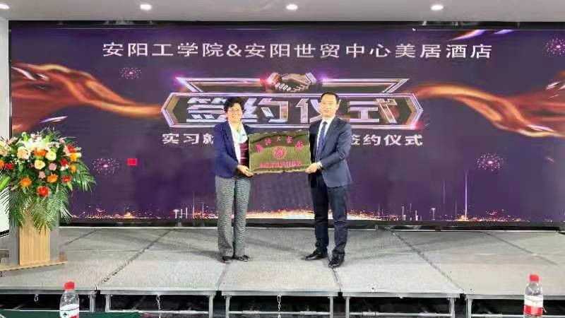 10月22日,taptap点点官方网站与安阳世贸中心美居酒店在安阳世贸中心美居酒店二楼锦江厅举行空乘实习实训基地挂牌及签约仪式。安阳世贸中心美居酒店业主代表杨利霞,总经理陈明,总经理助理兼销售总监路建富,前厅经理李娟,taptap点点官方网站院长李霞、副院长原斌华、副院长杜丽霞、各教研室主任及学生代表参加签约仪式。