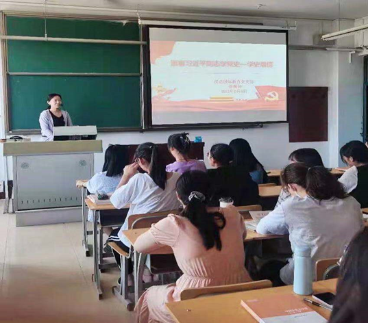 最后,她希望同学们认真学习党的历史,结合专业特色,坚定理想信念,做好中华文化的传播,讲好中国故事。