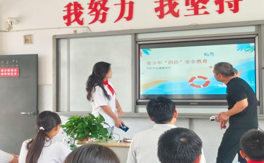 暑期是青少年安全事故高发期,农村儿童教育存在诸多薄弱环节。活动期间,外语学院志愿者团队结合七里店小学六年级学生的认知特点,创新设计了“四防教育”互动课堂与趣味英语教学模块。实践队聚焦乡村儿童安全痛点,围绕“防溺水、防诈骗、防性侵、防邪教及电信诈骗”四大主题展开精准科普。通过真实案例讲解、情景模拟互动、安全知识漫画展示等形式,用孩子们听得懂的语言拆解防溺水“六不准”原则、家庭火灾逃生步骤、电信诈骗常见套路及自我保护技巧。引导孩子们建立警惕意识,累计覆盖安全知识点20余项,在轻松互动中将安全知识根植于心。